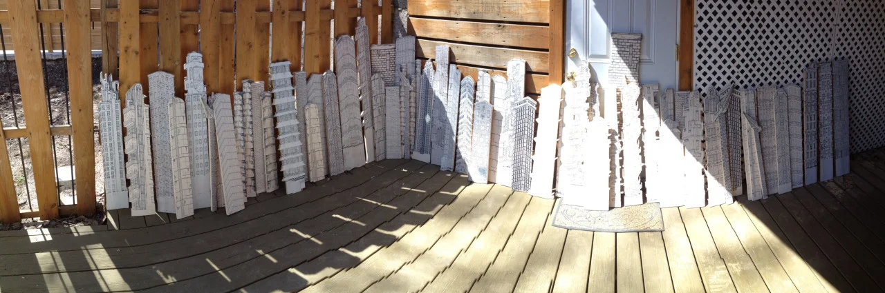 April 07, 2014 Towers are all cut. Began cutting smaller front row buildings. Getting closer to fabrication!